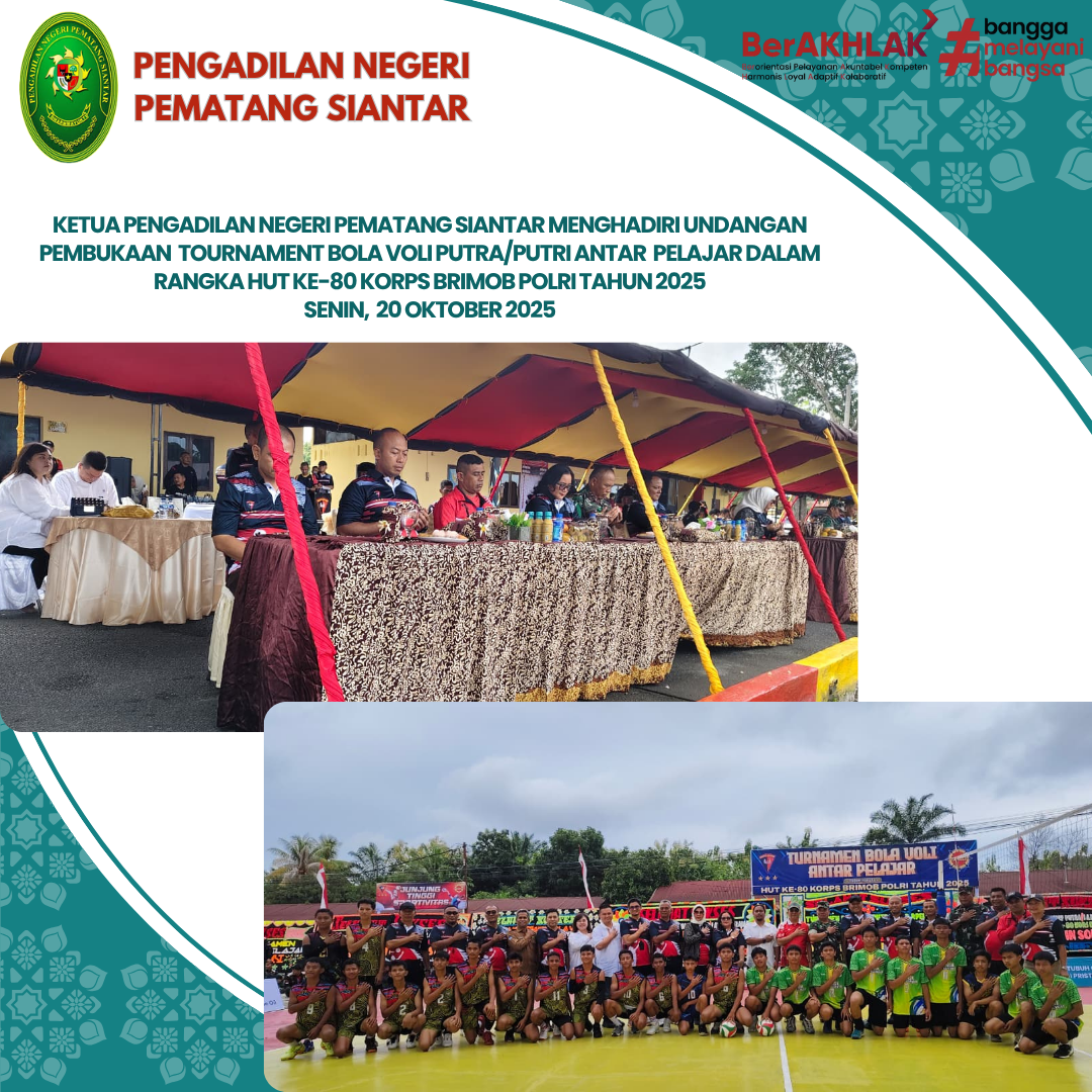 Bertempat di Mako Brimob Kompi 2 Batalyon B, JL. Ahmad Yani Pematang Siantar, Ketua Pengadilan Negeri Pematang Siantar, Ibu Rinto Leoni Manullang, S.H., M.H., menghadiri undangan Pembukaan Tournament Bola Voli Putra/Putri Antar Pelajar Dalam Rangka Hut ke-80 Korps Brimob Polri Tahun 2025.